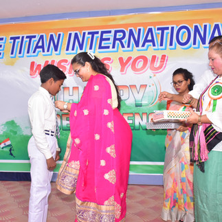 Being the second Independence Day program of The Titan International School, we knew that nothing could go wrong. The host, Mr. R. Correya, had planned everything perfectly. With the welcoming of the chief guest, the Honourable Ma'am R. Richter, we marched on towards the flag-hoisting ceremony. At 10:00 a.m., the flag was hoisted, followed by a salute and the national anthem. Considering it was a hot day, we escorted the chief guest to the hall where the events were ready to unfold.
